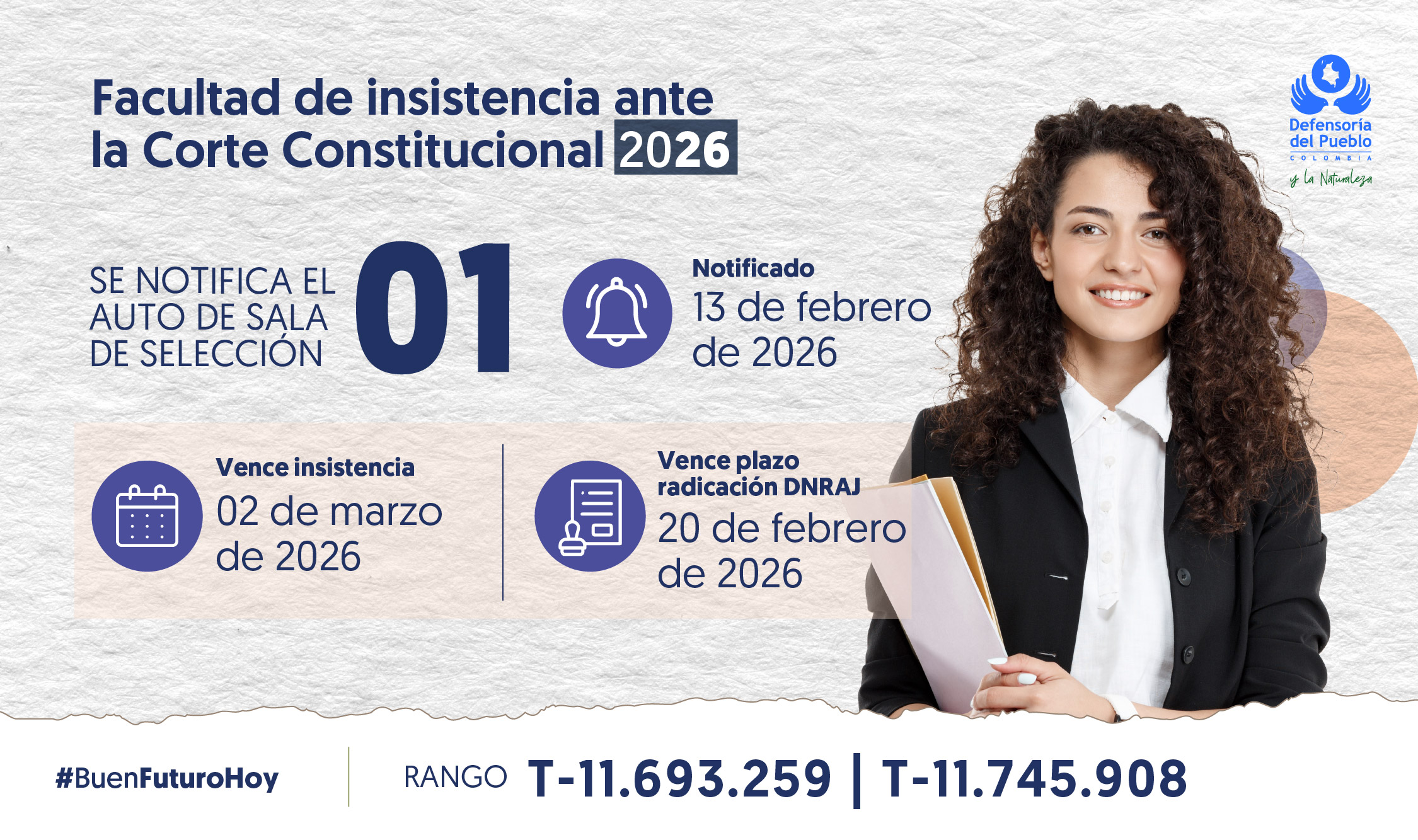 La atención es personalizada de 8:00 a. m a 5:00 p. m y se puede solicitar el servicio ingresando a www.defensoria.gov.co haciendo clic en “Radique aquí su petición”.