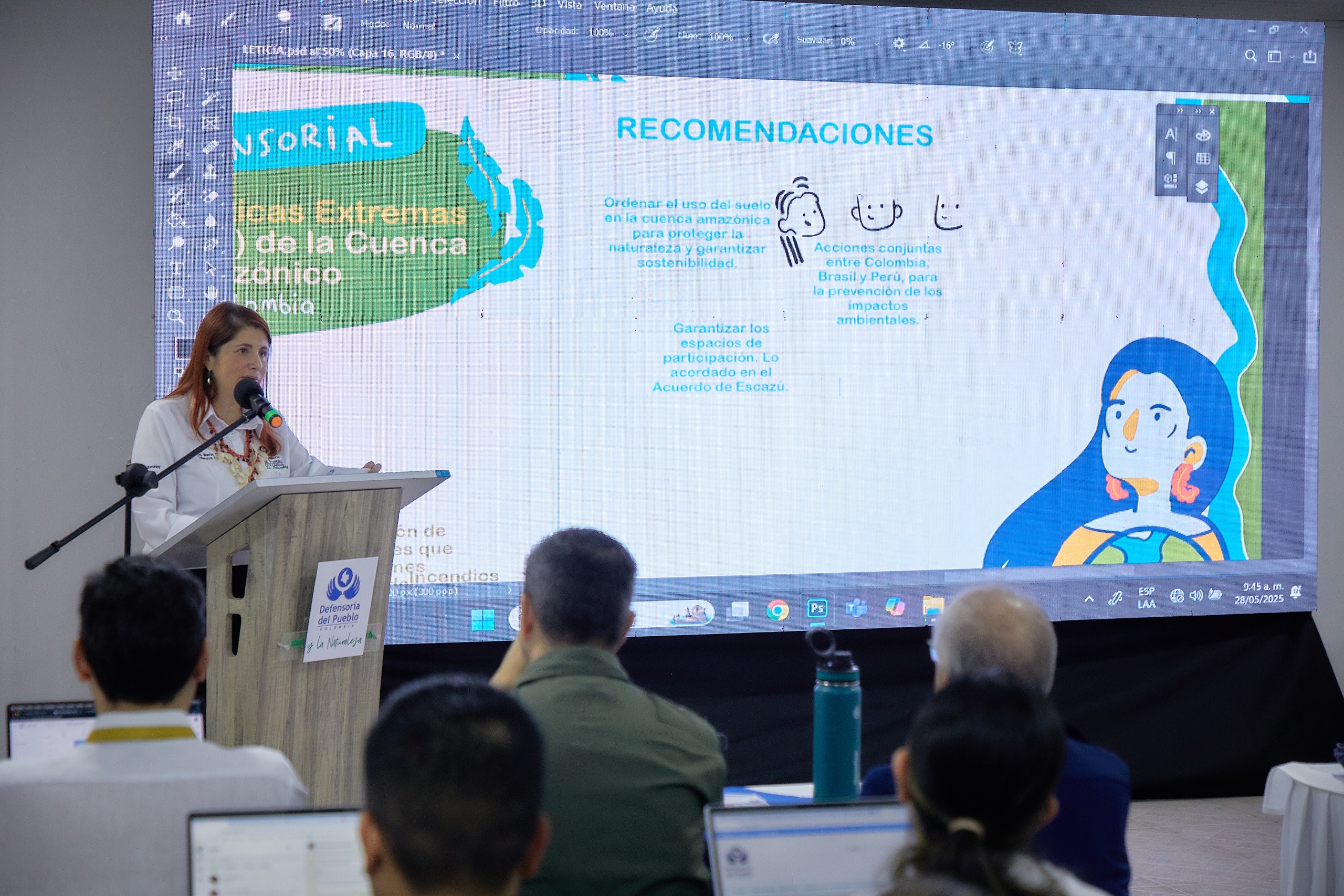 “También hacemos un llamado a las instituciones de derechos humanos en el ámbito internacional, particularmente a aquellas integradas en la Federación Iberoamericana del Ombudsperson (FIO), para que se evalúe la posibilidad de emitir un informe conjunto sobre las amenazas del cambio climático y la deforestación en la región amazónica de nuestros países. Visibilizar esta situación ante la comunidad internacional es una acción estratégica para fortalecer la cooperación ambiental transfronteriza y reforzar el cumplimiento de los compromisos multilaterales”, puntualizó la Defensora del Pueblo, Iris Marín Ortiz.