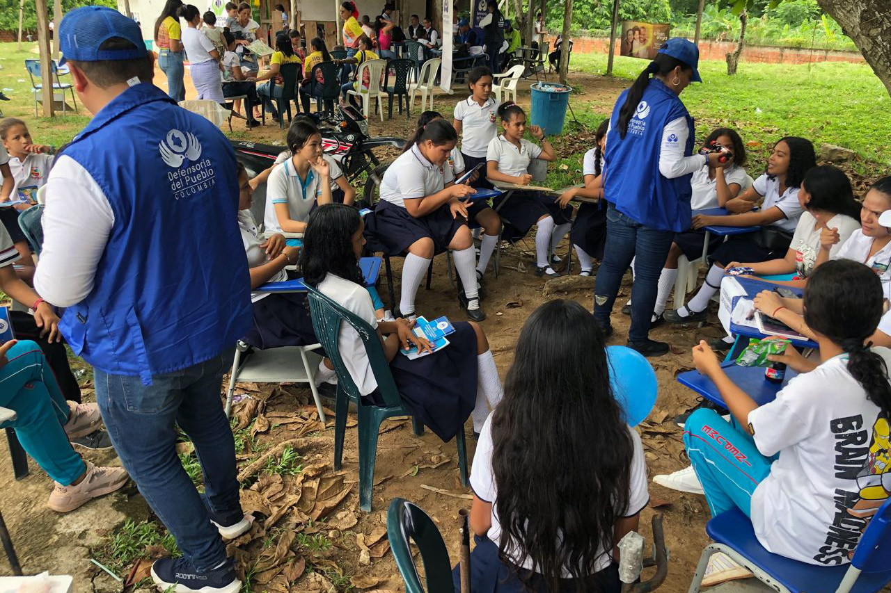 Durante la actividad, la Delegada de Mujer y Género impartió un taller a 70 niños, niñas y adolescentes sobre los derechos de la mujer y los tipos de violencia de género. Paralelamente, en colaboración con la Dirección de Promoción y Divulgación, se implementó una estrategia de difusión sobre derechos humanos, acoso escolar y prevención del reclutamiento forzado, beneficiando a 80 estudiantes y 30 miembros de la comunidad.