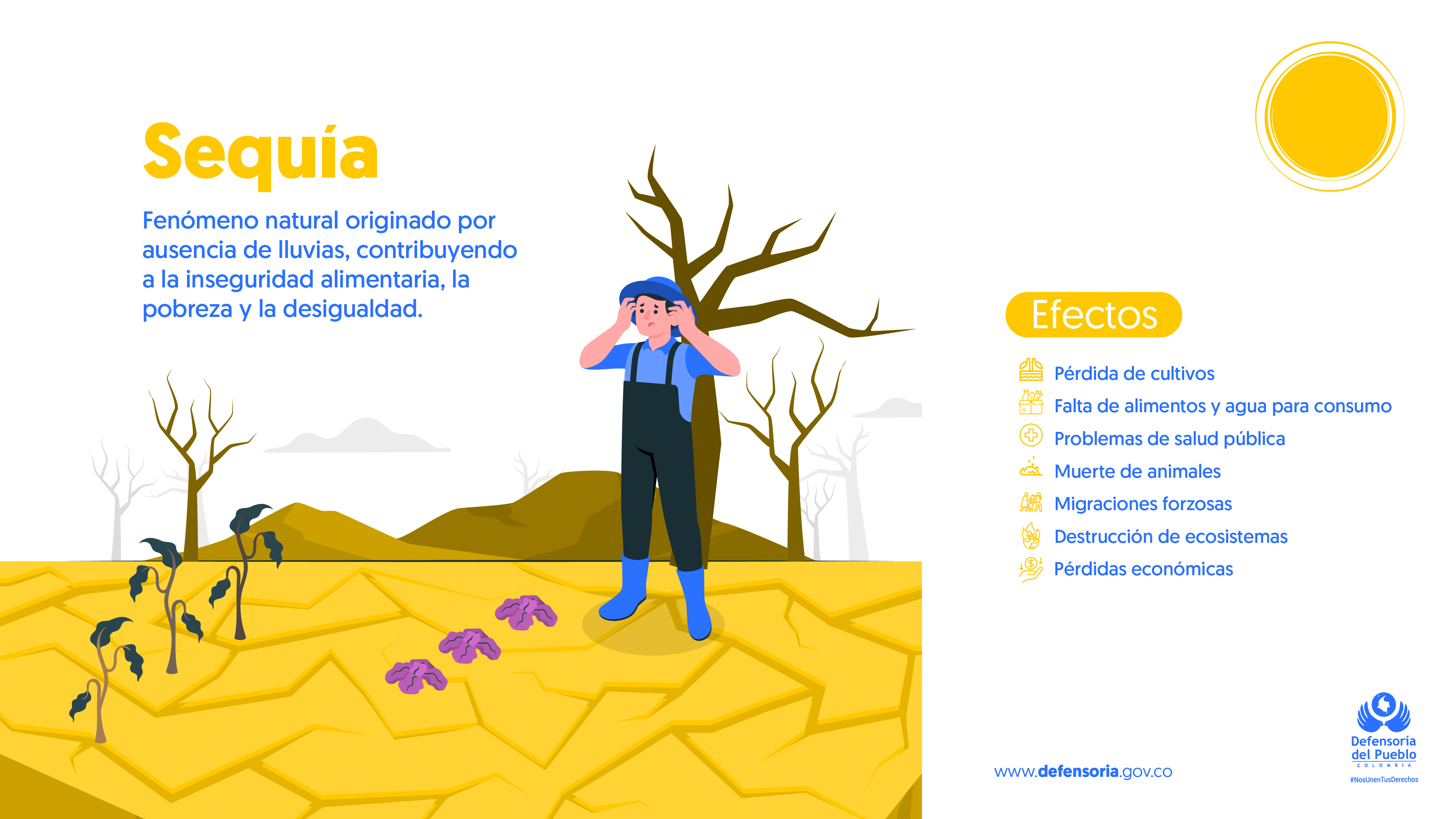En esta ocasión, la sequía que afecta a diversas regiones del país ha motivado la creación de una serie de publicaciones en las redes sociales de la Defensoría del Pueblo. A continuación, compartimos algunas de ellas: