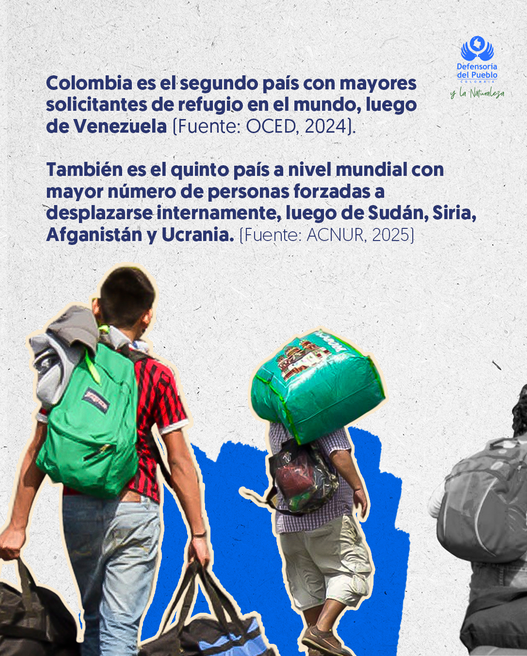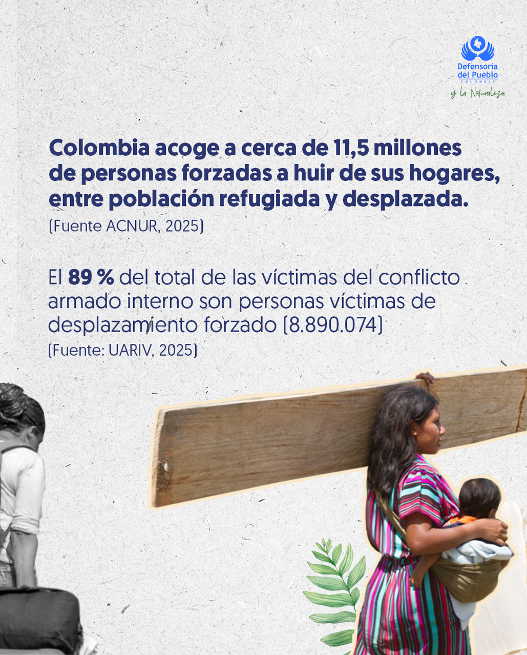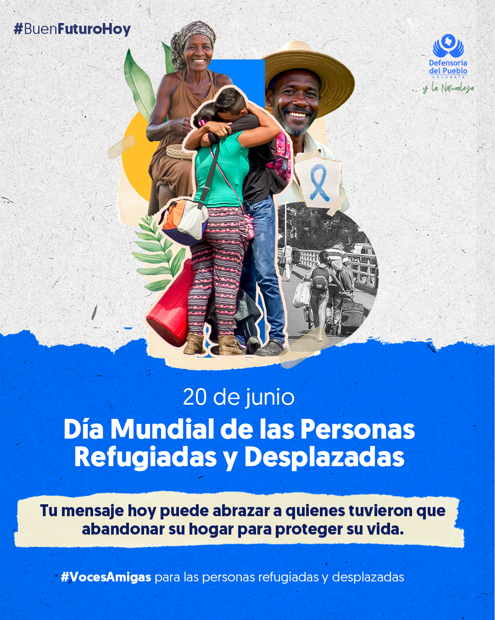 La Defensoría del Pueblo, como garante de derechos y acompañante en el camino de las víctimas, reafirma su compromiso con las personas desplazadas y refugiadas. Hoy, más que nunca, Colombia necesita ser una voz amiga para quienes han sido forzados a huir.