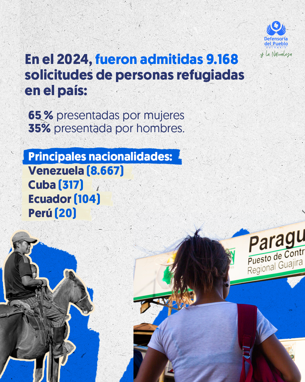 En 2024, Colombia recibió 9.168 solicitudes de refugio, con el 65% presentadas por mujeres. Las nacionalidades más frecuentes fueron Venezuela (8.667), Cuba (317), Ecuador (104) y Perú (20), de acuerdo con cifras oficiales del Estado colombiano.