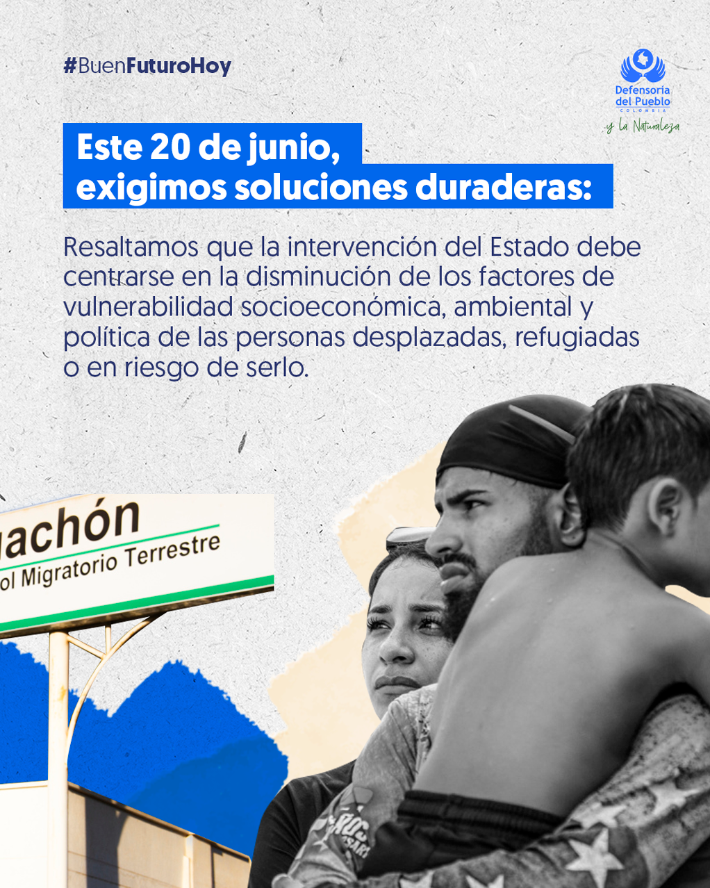 Este 20 de junio, la Defensoría del Pueblo reitera su llamado a todos los actores institucionales, sociales y comunitarios para avanzar hacia soluciones reales y sostenibles. Para ello es indispensable: