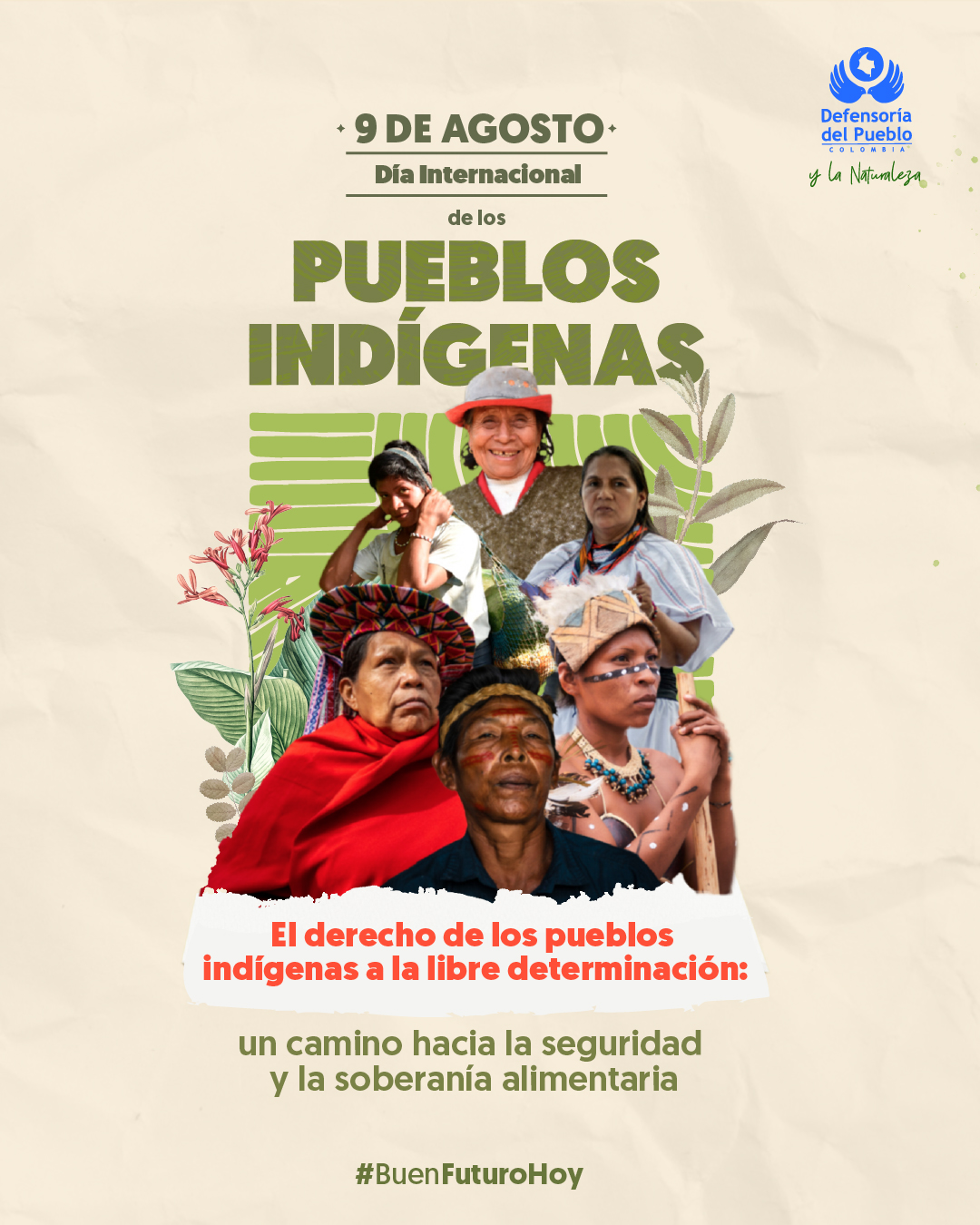 Este 9 de agosto, en el marco del Día Internacional de los Pueblos Indígenas, la Defensoría del Pueblo reafirma su compromiso con la protección de los derechos de los pueblos originarios de Colombia, promoviendo el respeto a su libre determinación, sus sistemas de gobierno propio, la soberanía alimentaria, la sostenibilidad ambiental y el reconocimiento de sus conocimientos y prácticas ancestrales. Esta fecha, establecida por la Asamblea General de las Naciones Unidas en 1994, representa un llamado global a la no discriminación y al fortalecimiento de las culturas y formas de vida que han pervivido durante siglos en armonía con la naturaleza.