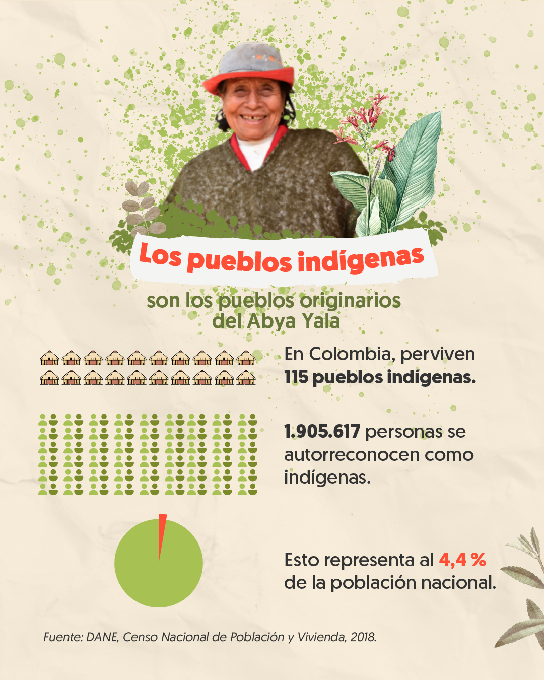 En Colombia, según el Censo Nacional de Población y Vivienda de 2018 del DANE, 1.905.617 personas se autorreconocen como indígenas, lo que equivale al 4,4 % de la población nacional. Además, perviven 115 pueblos indígenas y se hablan 65 lenguas nativas, que constituyen un patrimonio cultural y lingüístico de la Nación. Estas lenguas son vehículo de transmisión de saberes, prácticas comunitarias, relación con la Madre Tierra y memoria colectiva.