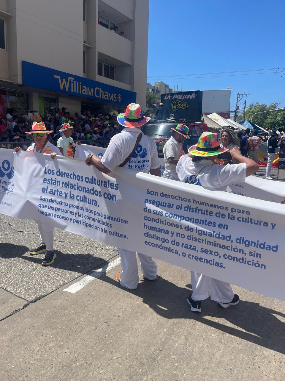Bajo la premisa de ratificar la multiculturalidad en el Caribe colombiano, la Delegada para los Derechos Económicos, Sociales y Culturales (DESC), con el apoyo de la Regional Atlántico, participó en el desfile de la Batalla de Flores, Color y Tradición de la Carrera 44, en el marco del Carnaval de Barranquilla, una de las fiestas más tradicionales de Colombia.