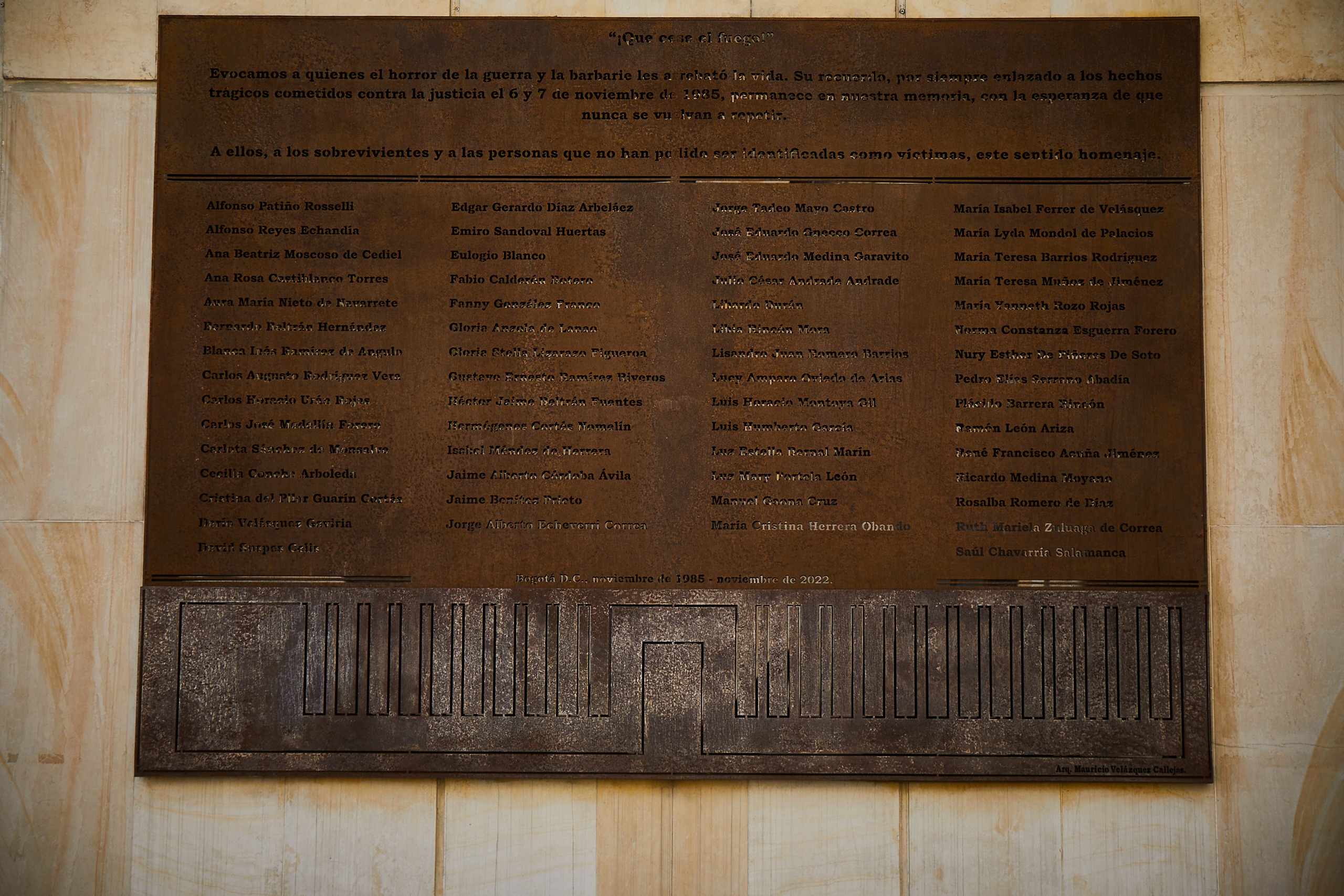 Este acto, en el que participó la Defensora del Pueblo, Iris Marín Ortiz, tuvo lugar entre el Palacio de Justicia y la Casa del Florero, un corredor cargado de memoria donde ocurrieron los hechos del 6 y 7 de noviembre de 1985.
