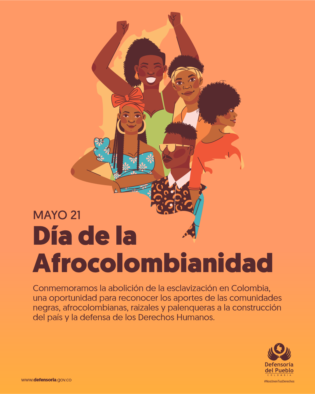 En el marco del Día de la Afrocolombianidad, la Defensoría del Pueblo exalta la invaluable herencia histórica y cultural de la población negra, reconociendo su lucha por la libertad, la resiliencia y la fortaleza que han demostrado a lo largo de la historia.